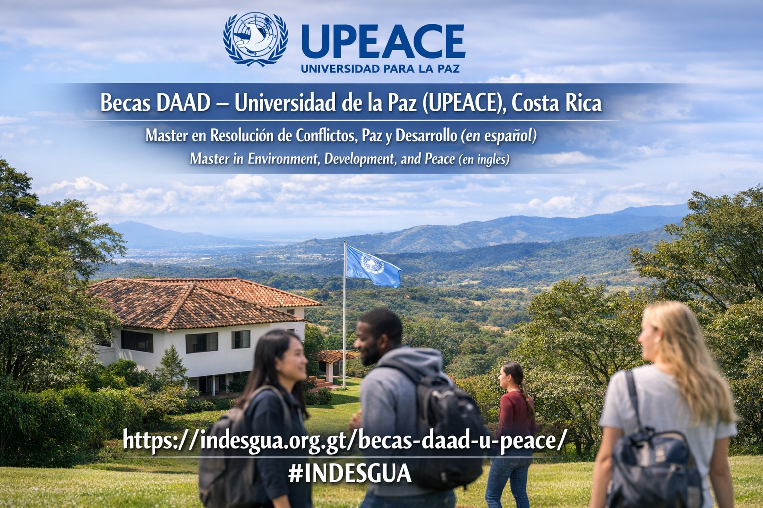 En el marco del Programa Regional DAAD lanzo la Convocatoria de Becas de Maestría 2025en la Universidad para la Paz (U Peace), Costa Rica para realizar estudios en la Maestría en Medio Ambiente, Desarrollo y Paz y en la Maestría en Resolución de Conflictos, Paz y Desarrollo