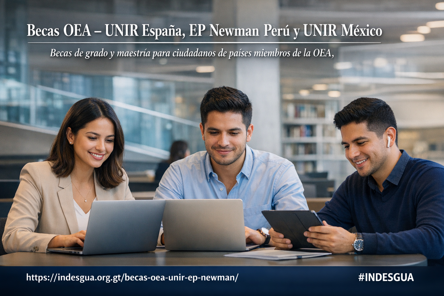 Es una iniciativa conjunta de la Organización de los Estados Americanos (OEA) con la Universidad Internacional de La Rioja (UNIR – España), la Escuela de Postgrado EP Newman (Perú) y UNIR México, para ofrecer becas académicas parciales en modalidad virtual a profesionales de los países miembros de la OEA que deseen realizar estudios de grado, posgrado o formación permanente.