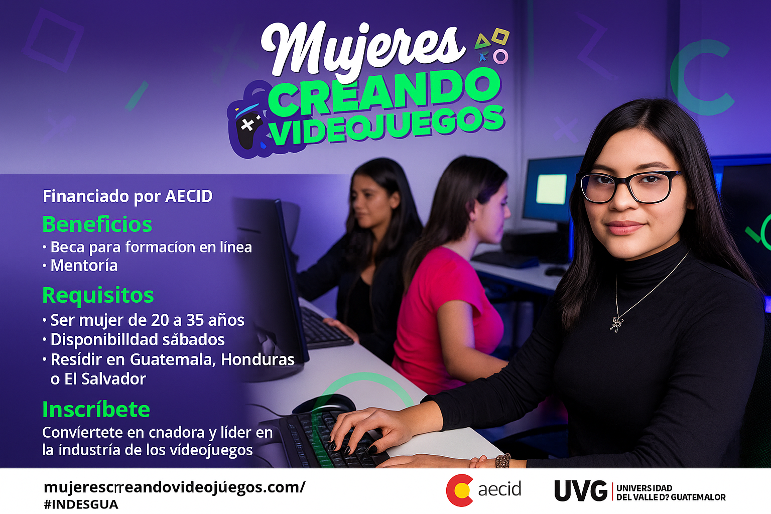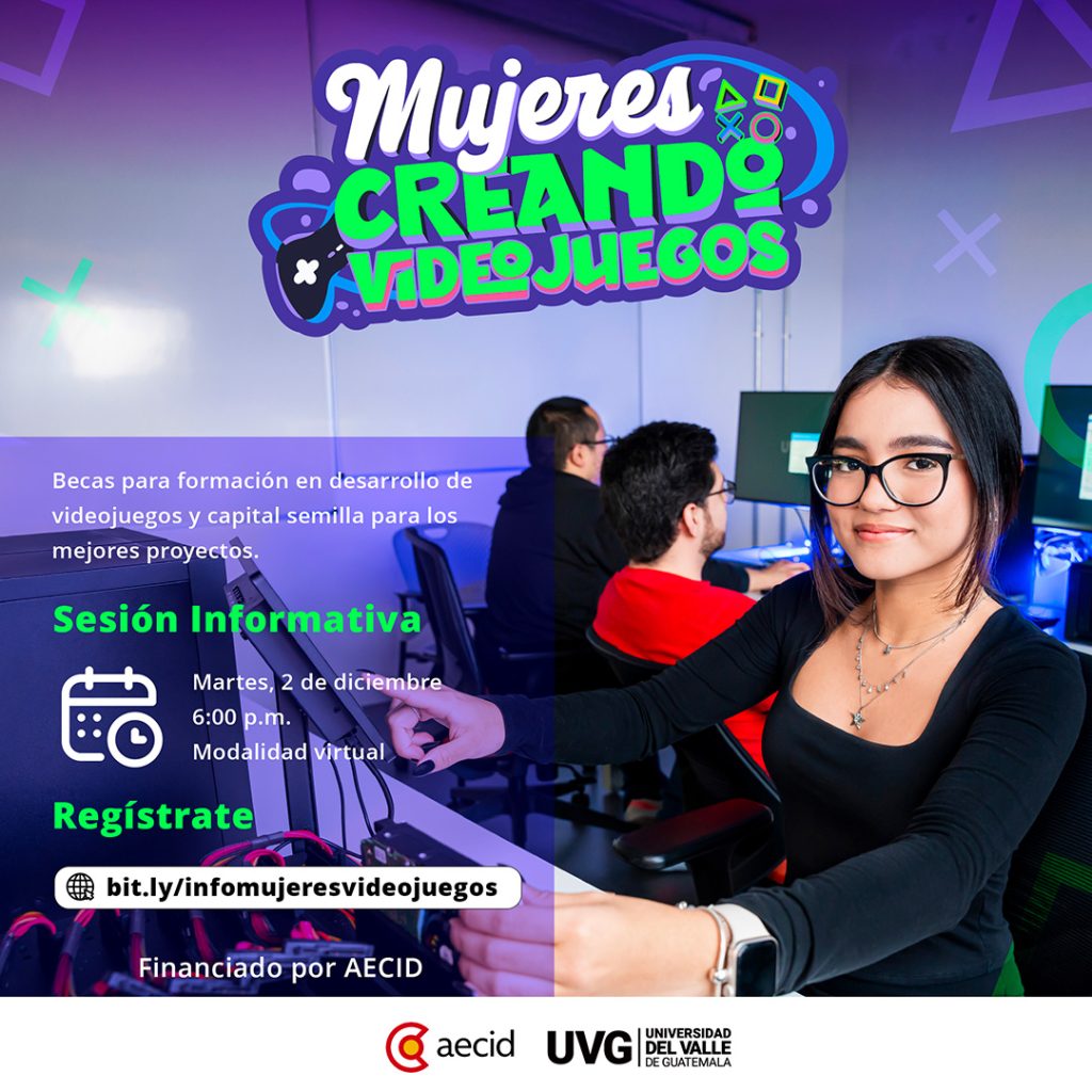Mujeres Creando Videojuegos, un nuevo programa de la Universidad del Valle de Guatemala en alianza con la Agencia Española de Cooperación Internacional para el Desarrollo (AECID), para impulsar la participación de mujeres en el desarrollo de videojuegos en la región.