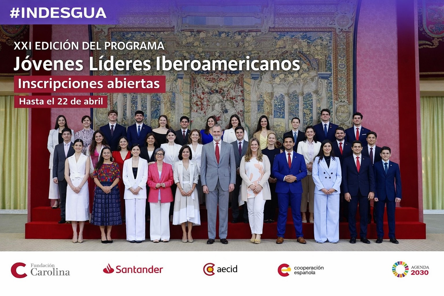 El lunes, 23 de febrero, se abrió el plazo para presentar solicitudes a la XXI edición del programa Jóvenes Líderes Iberoamericanos, organizado por el Banco Santander y la Fundación Carolina. La próxima edición se celebrará del 14 al 27 de junio de 2026 en Madrid, Cádiz y Bruselas. El plazo para presentar candidaturas finalizará el 22 de abril de 2026.